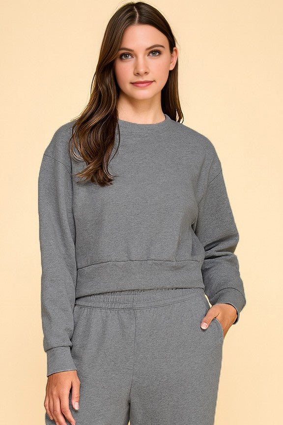 - Grey French terry fleece lined set crewneck