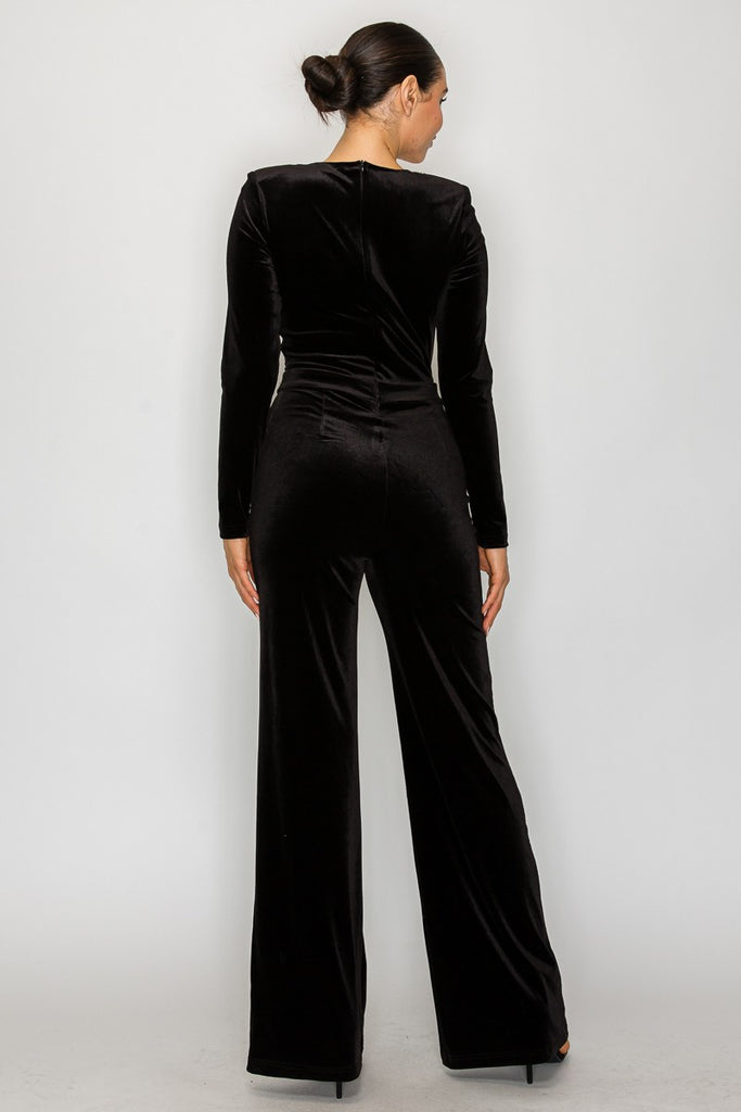 OH WHAT A NIGHT VELVET JUMPSUIT - BLACK