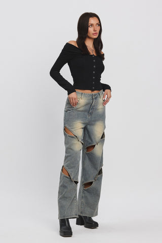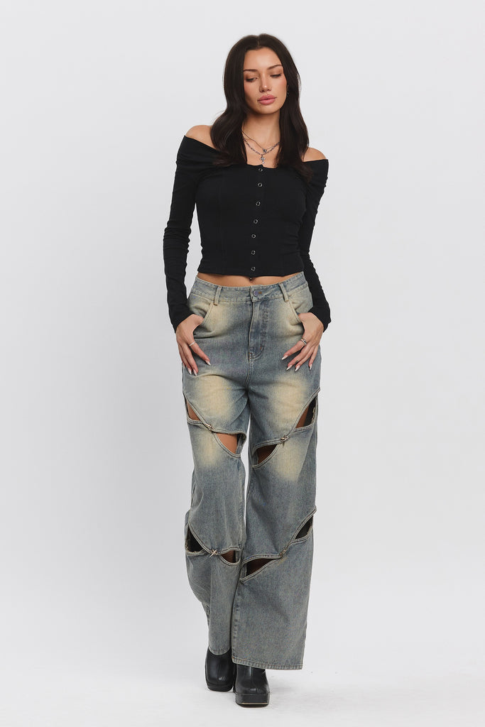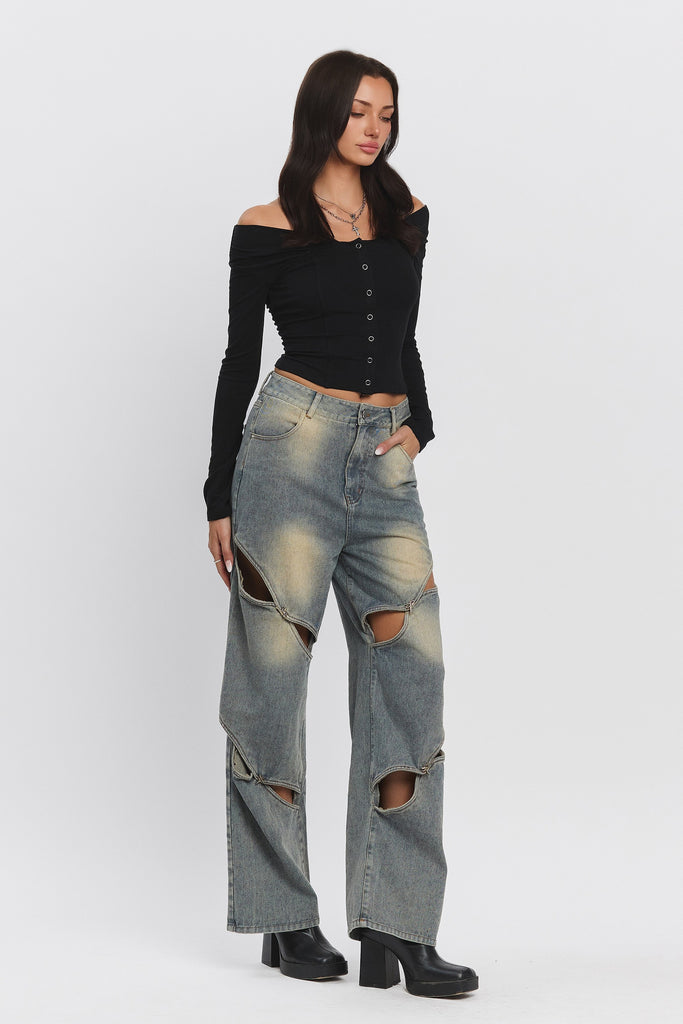 KYLIE VINTAGE WASH CUT-OUT JEANS