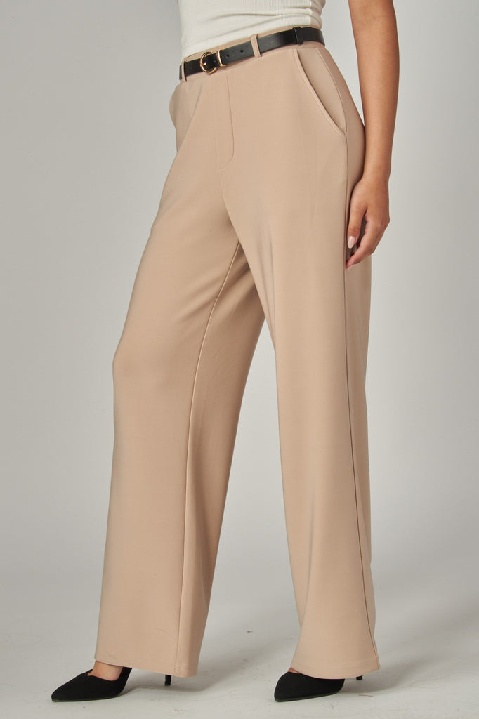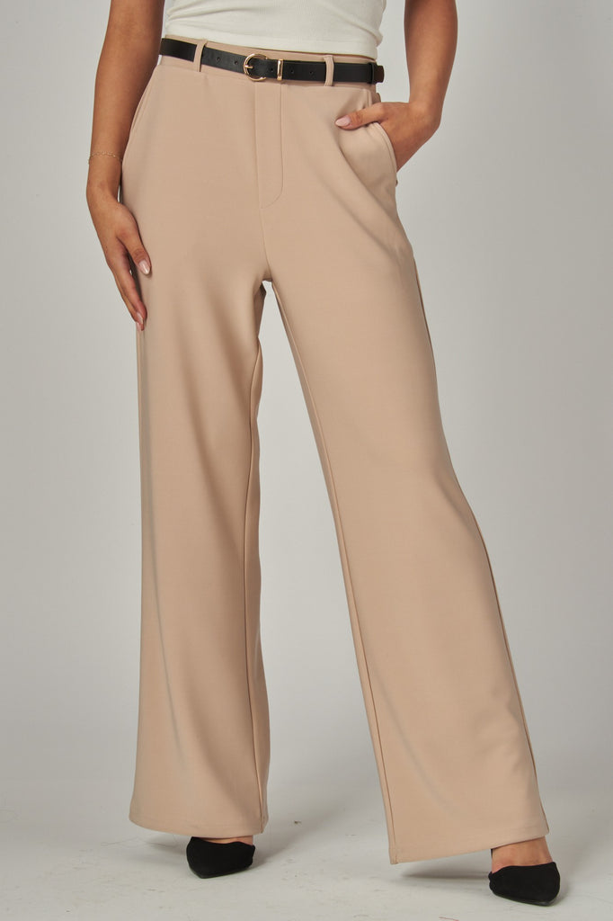 WORK AND PLAY WIDE LEG BELTED PANTS - TAUPE