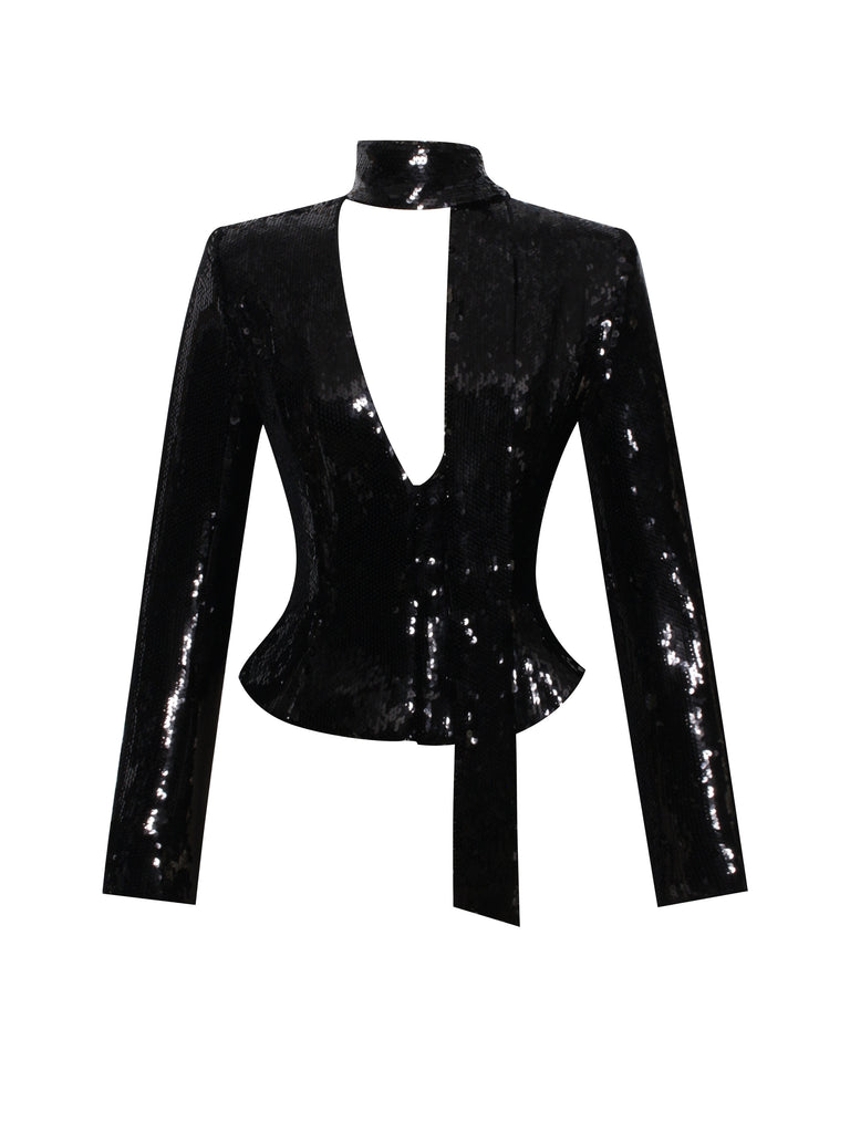 TAMIRA BLACK SEQUIN DEEP V TOP WITH SCARF