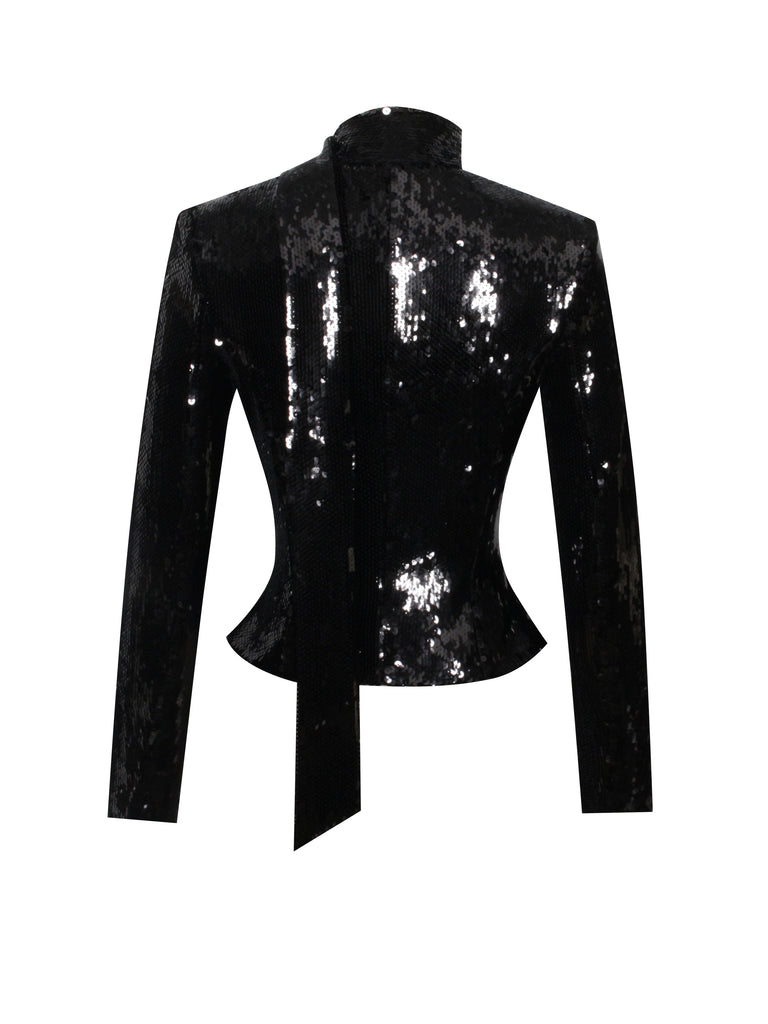 Dazzle with elegance in the Tamina Top, a stunning piece crafted from shimmering black sequins.