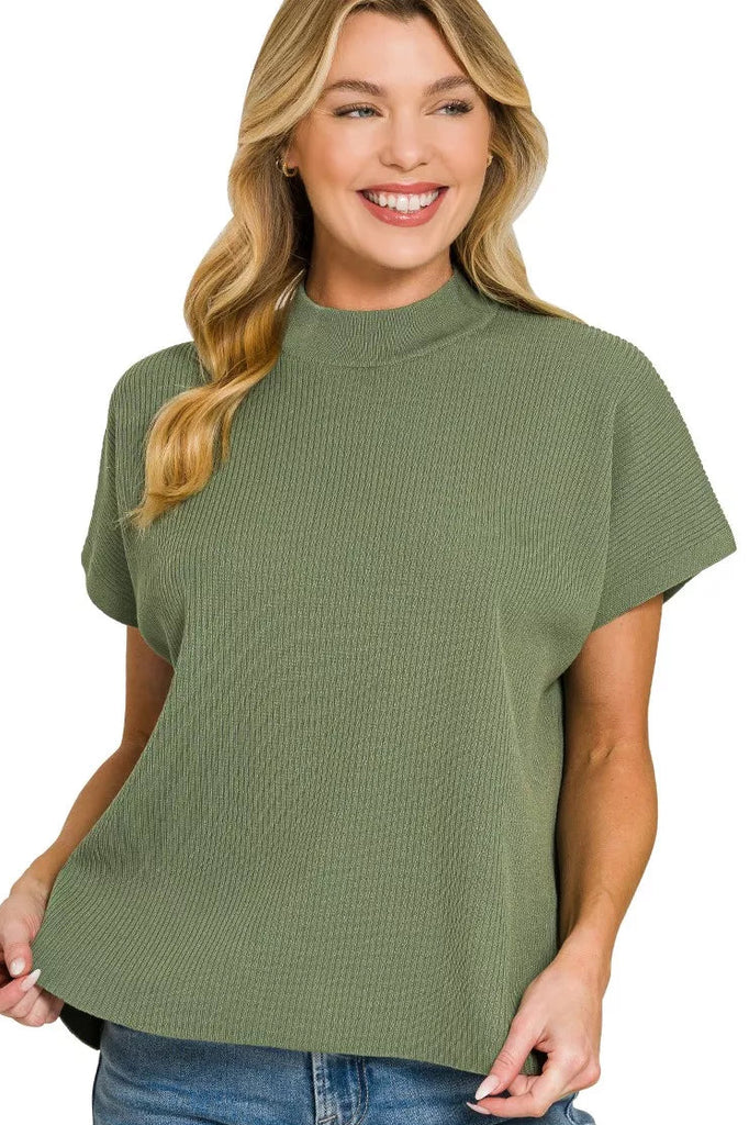 The Viscose Mock Neck Short Sleeve Boxy Sweater is a modern and chic addition to your wardrobe. Crafted from luxurious viscose fabric, this sweater offers a soft and comfortable feel. The mock neck design adds a touch of sophistication to the boxy silhouette. With short sleeves, it is perfect for layering or wearing on its own in transitional weather. Elevate your style with the effortless elegance of the Viscose Mock Neck Short Sleeve Boxy Sweater for a versatile and on-trend look.