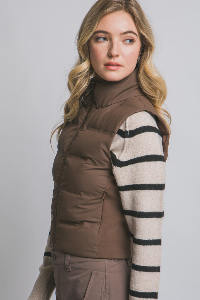 LYSS SLIM-FIT PUFFER VEST - BROWN
