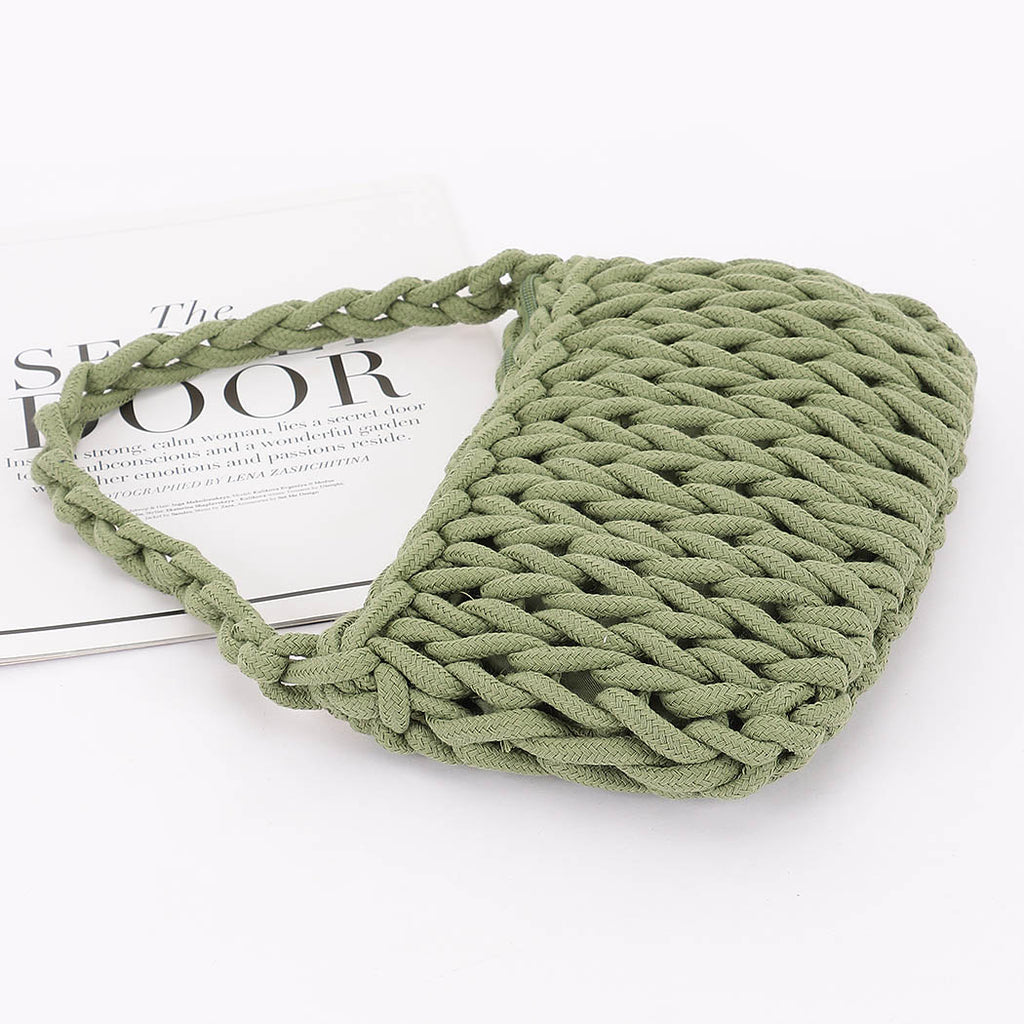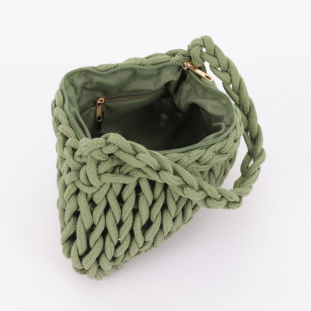 COTTON BRAIDED HOBO BAG - GREEN